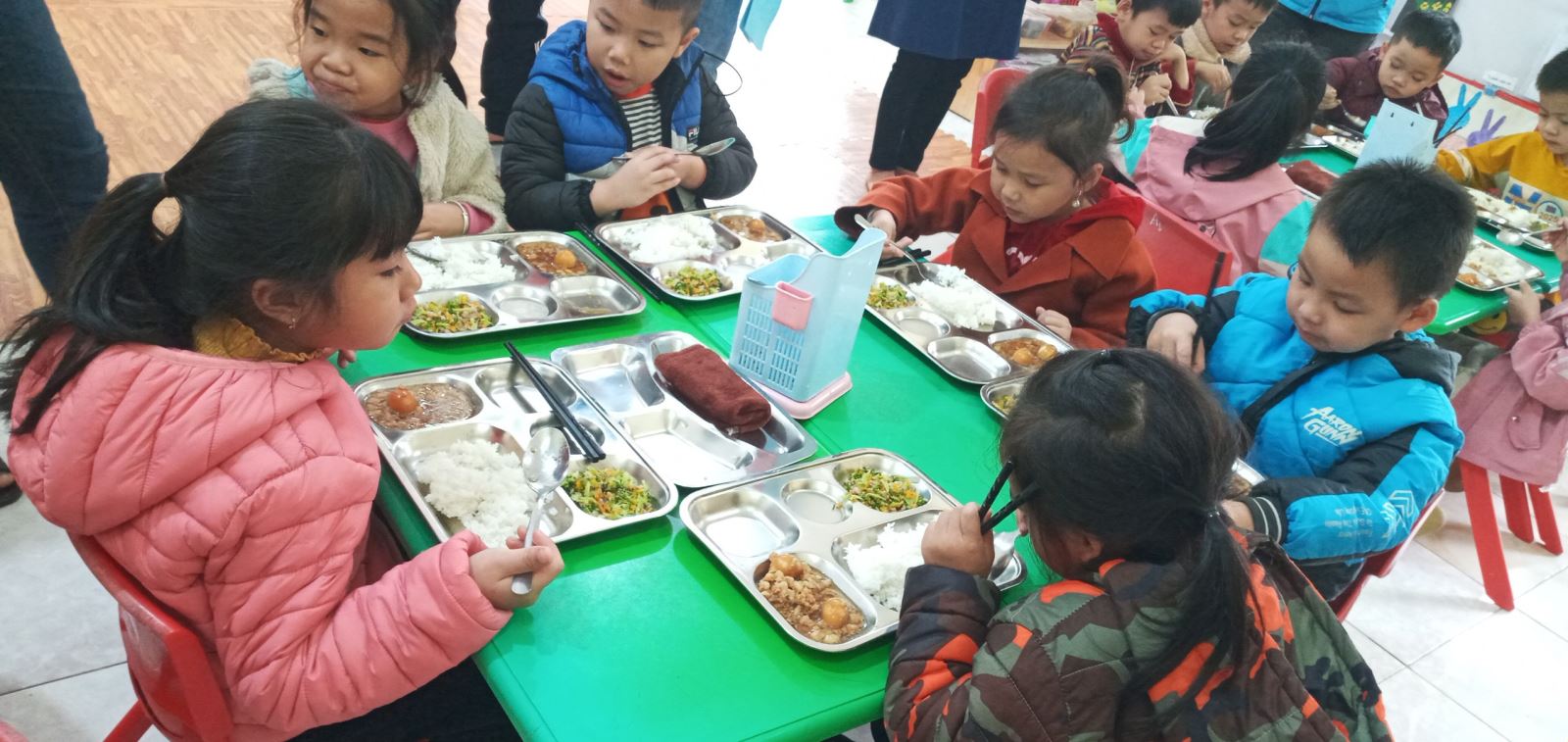 Giờ ăn khay của các bạn nhỏ lớp 5 tuổi A1