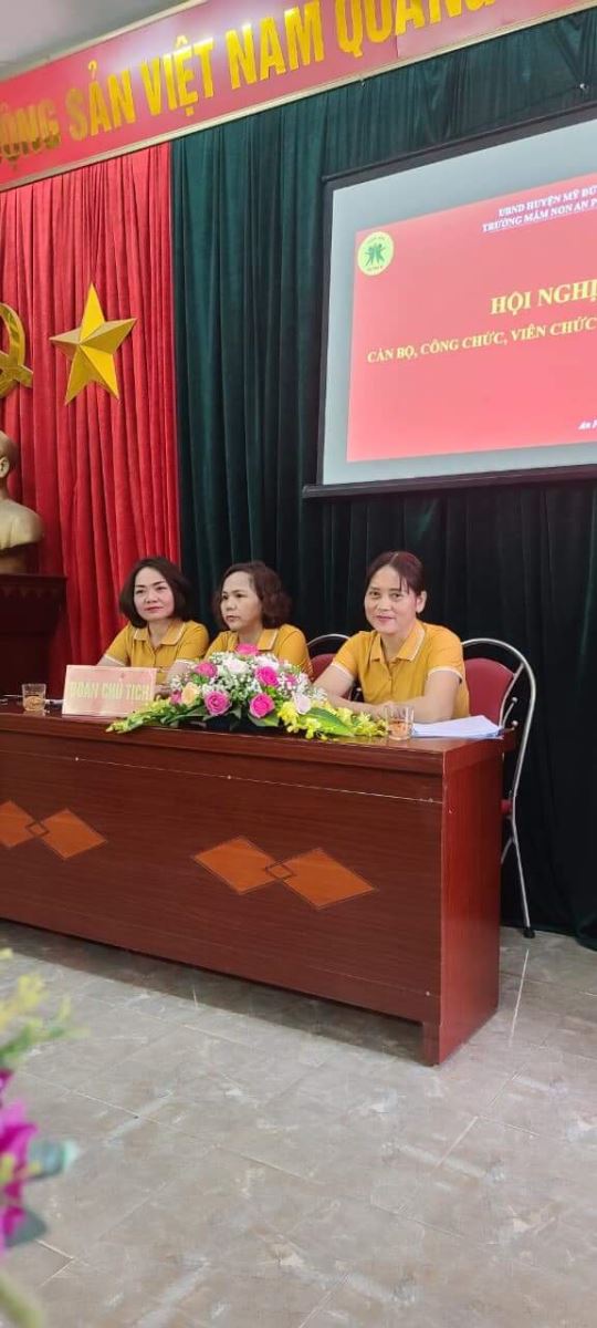 01/10/2022 A- A A+ | HỘI NGHỊ CÁN BỘ, CÔNG CHỨC, VIÊN CHỨC NĂM HỌC 2022 - 2023 bao cao hncnvc 2022-2023.docx Xem Chia s? Ngày 30 tháng 09 năm 2022 Trường MN An phú A đã tổ chức thành cồng HỘI NGHỊ CBCCVC năm học 2022 - 2023 Theo đó, về dự với hội nghị có : Đ/c : Đinh Hữu Nam - ĐUV - Phó CT HDND xã Đ/c : Trần Văn Thụ - ĐUV - Bí thư đoàn xã Cùng sự có mặt của tập thể CBGVNV trường MN An Phú A . Mở đầu cho hội nghị là những tiết mục văn nghệ đặc sắc của các đ/c GVNV nhà trường Bài múa : Xin chào Việt Nam Hát Hồn Quê do đ/c Nguyễn Thị Ánh Nguyệt thể hiện Ca khúc : SaPa nơi gặp gỡ đất trời do đ/c Ca thể hiện HN diễn ra nghiêm túc hiệu quả : Đ/c Bạch Thị Liên - Bí thư CB - Hiệu Trường nhà trường thông qua báo kết quả hoạt động năm học 2021 - 2022 và phương hướng nhiệm vụ năm học 2022 - 2023; HN đã được nghe và nhất trí về Quy chế chi tiêu nội bộ; Quy chế dân chủ; quy chế nhà trường; Đ/c - Hoàng Thị Kim Ngân- PHT- Chủ tịch CĐ , thông qua BC tồng kết phong trào thi đua năm học 2021 - 2022, dự kiến phong trào thi đua, nội dung giao ước thi đua năm học 2022 - 2023; HN được lắng nghe các ý kiến tham luận của đ/c Nga, đ/c Trang Bản báo cáo hoạt động TTND năm học 2021 - 2022 , phướng hướng nhiệm vụ năm 2022 - 2023 do đ/c Nguyễn Thị Bền - GV - Trưởng ban TTND trành bày HN vinh dự được nghe ý kiến chỉ đạo của đ/c Đinh Hữu Nam - ĐUV - Phó CT HĐND xã Hội nghị kết thúc thông qua nghị quyết do đ/c thư ký HN trình bày. 100% CBGVNV có mặt nhất trí thực hiện theo NQHN. Một số hình ảnh HN: Tập tin đính kèm Tải về